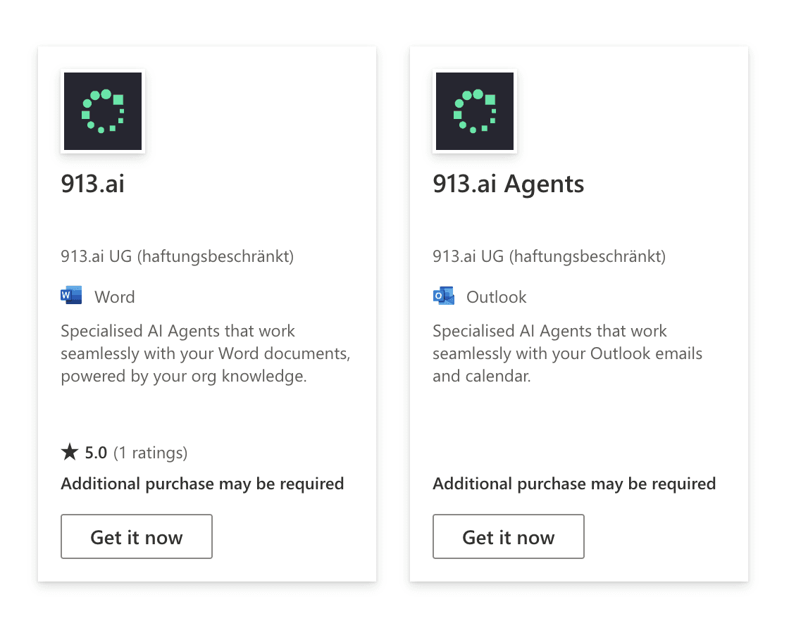 The 913.ai Word and Outlook Add-ins solve this by bringing intelligent AI agents directly into Microsoft Word and Outlook.